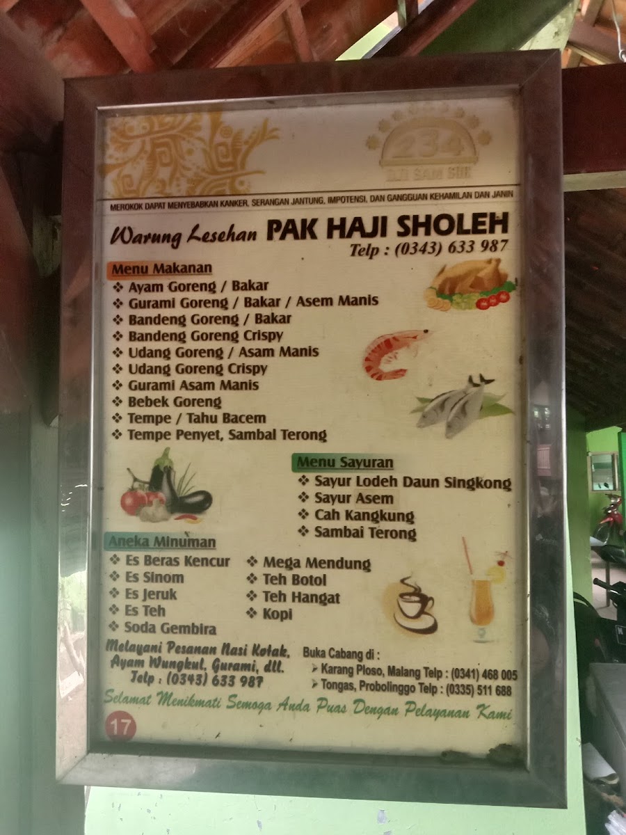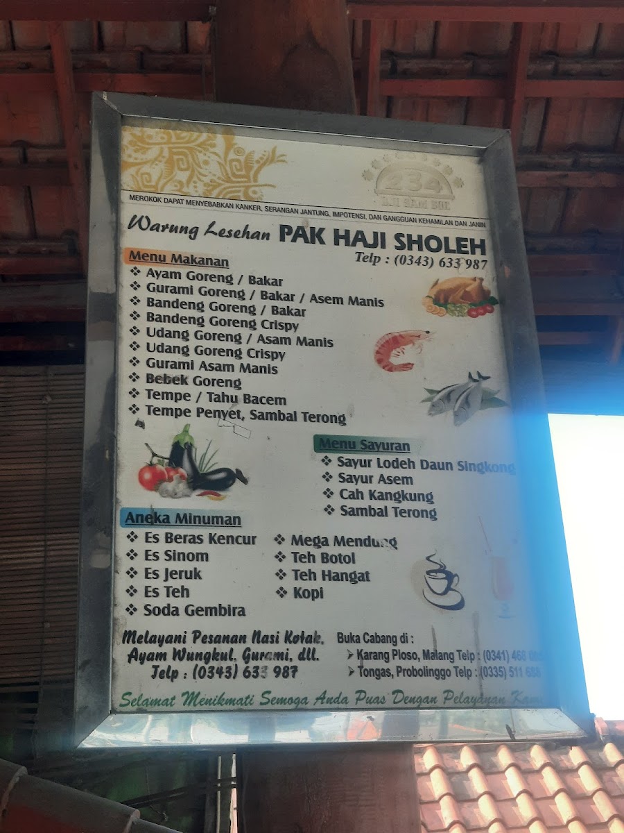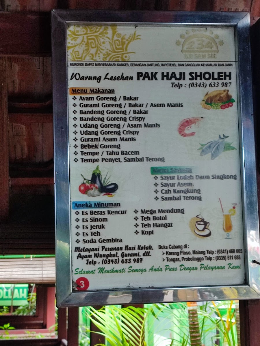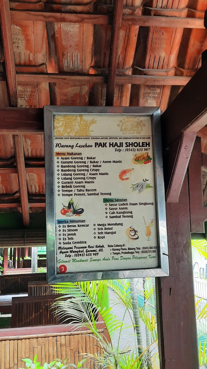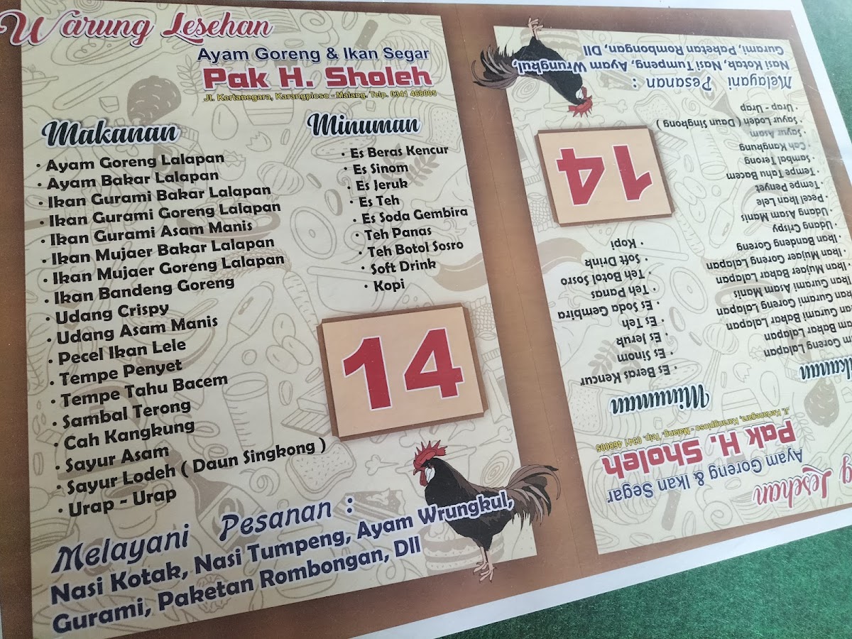 Introducing the menu at Lesehan Ayam Goreng & Ikan Segar Pak H. Sholeh, a gem located in Probolinggo, East Java, where taste reigns supreme. This quaint eatery specializes in mouthwatering fried chicken and fresh fish, offering a delightful twist on traditional Indonesian cuisine. Visitors are wowed by the rich flavors and impeccable seasoning, promising an unforgettable dining experience.